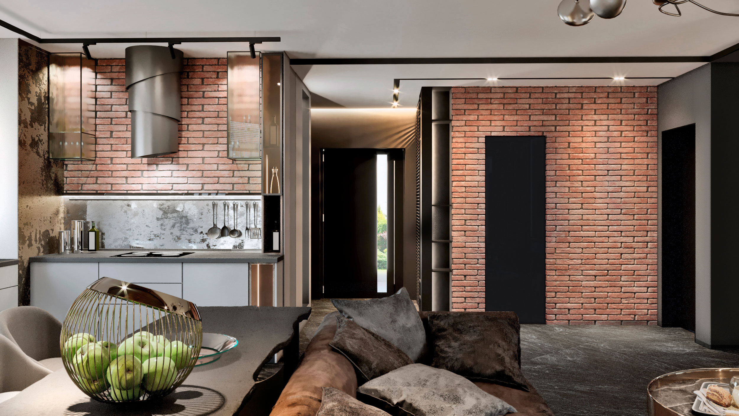 В основе интерьера превалируют исключительно природные материалы: древесина, камень, стекло, кирпич, штукатурка. Сочетание грубых текстур бетона, металла с различными эффектами с однотонными поверхностями и гладким текстилем добавляют графичности и художественности интерьеру.