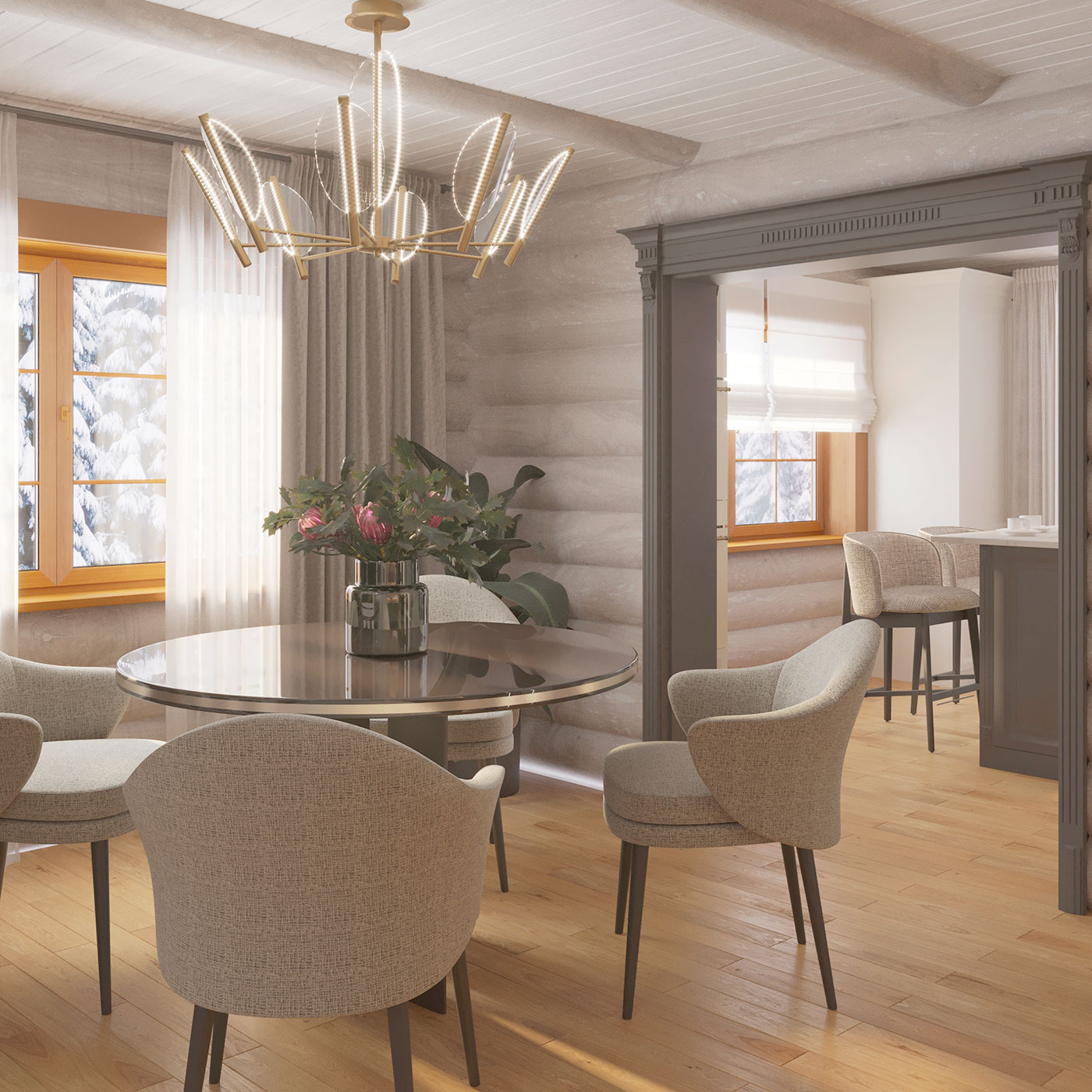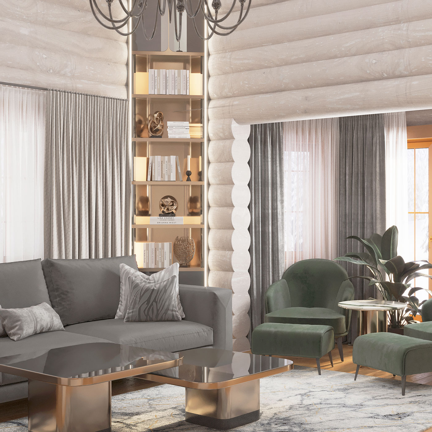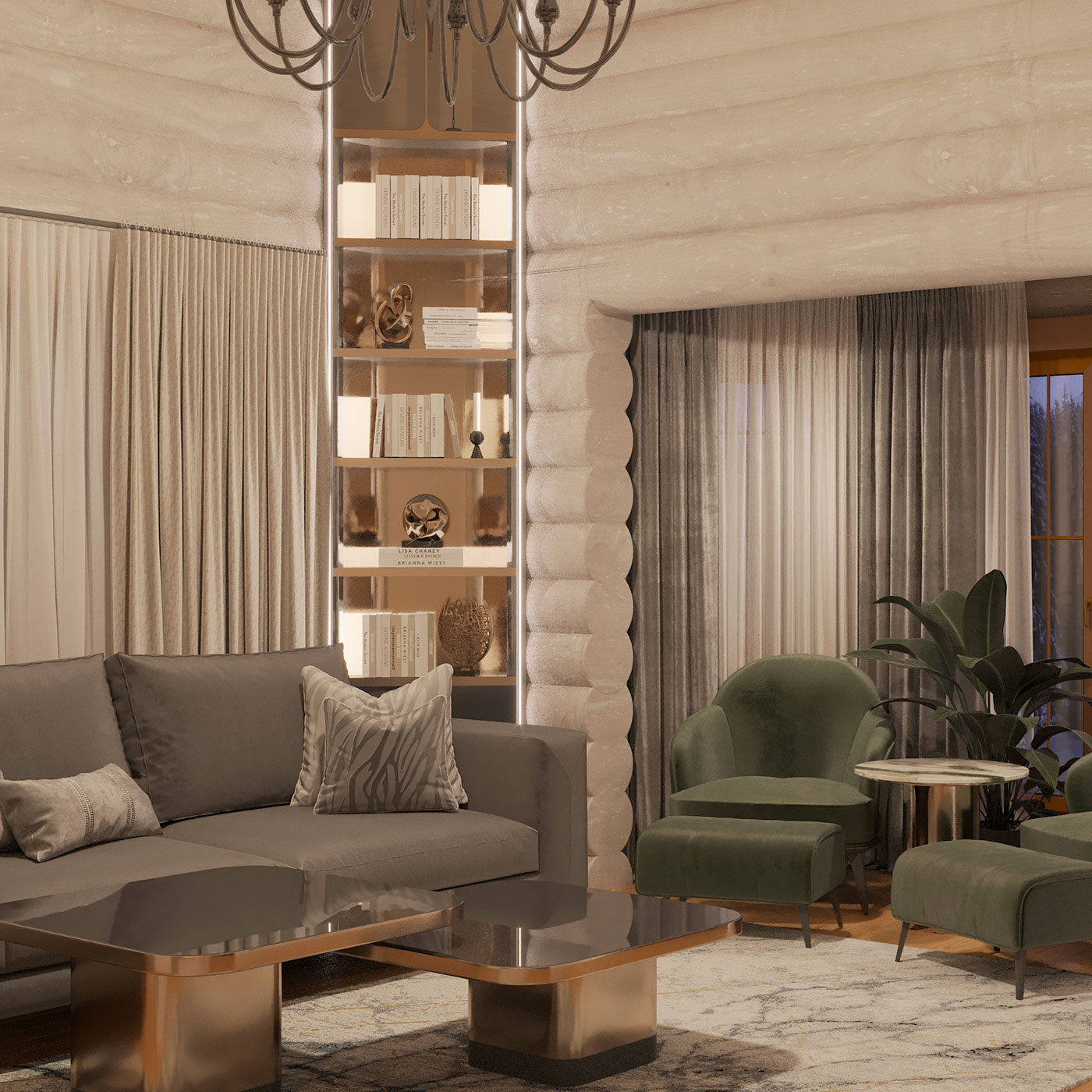 Основу интерьера создают натуральные материалы и фактуры, дополняют благородные сложные цвета в мебели и текстиле, изящные формы, теплый атмосферный свет. Преобладающая натуральность интерьера разбавлена глянцевыми поверхностями, которые добавляют глубины и воздуха пространству дома.