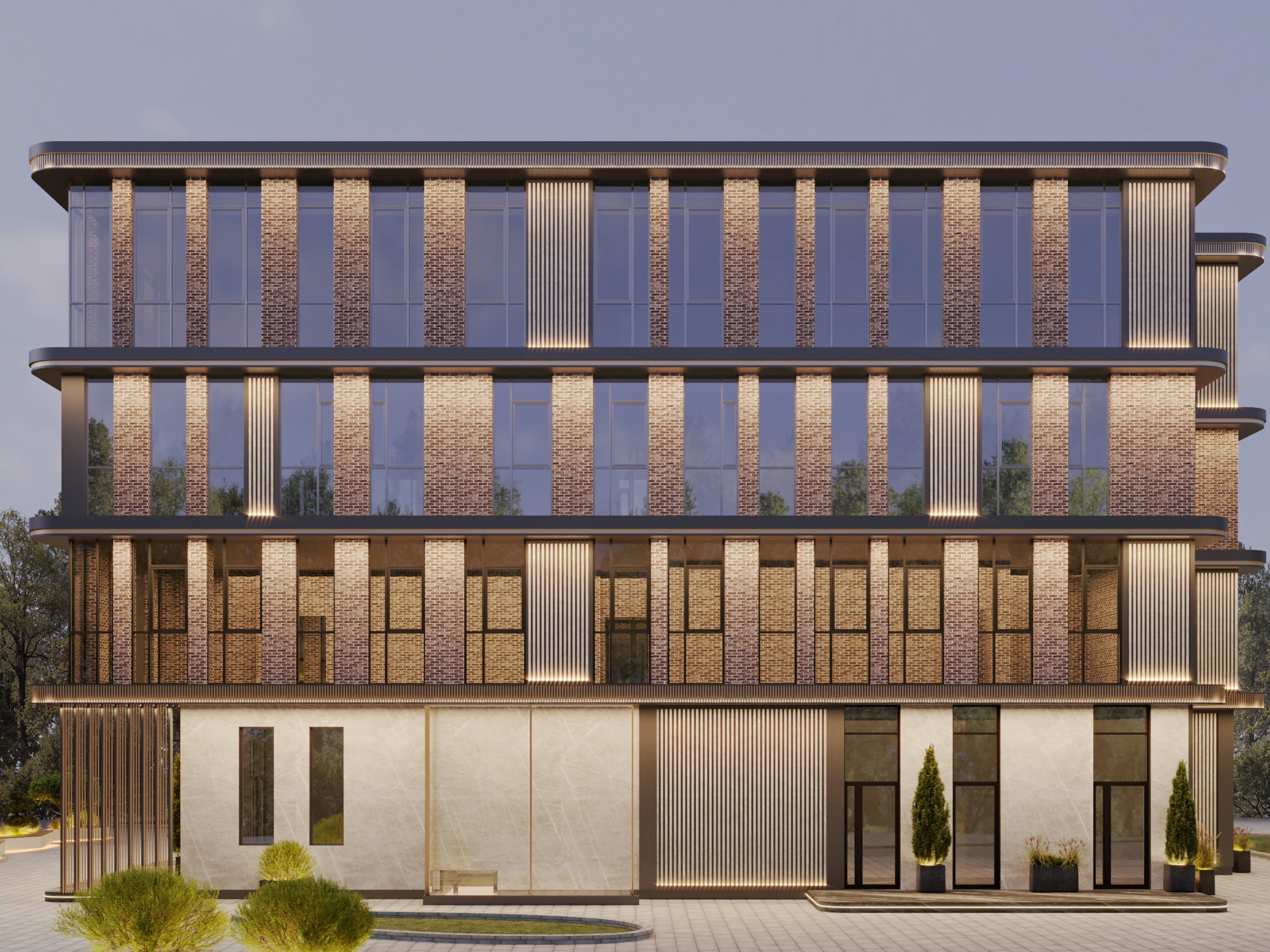 Выразительная идея фасада здания, прогрессивные приемы нацелены на то, чтобы повысить ликвидность объекта, и принести проекту популярность.